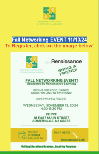 Wednesday, November 13, 2024,  4:30 – 6:30 pm  Location:  Verve, 18 East Main Street, Somerville, NJ  08876